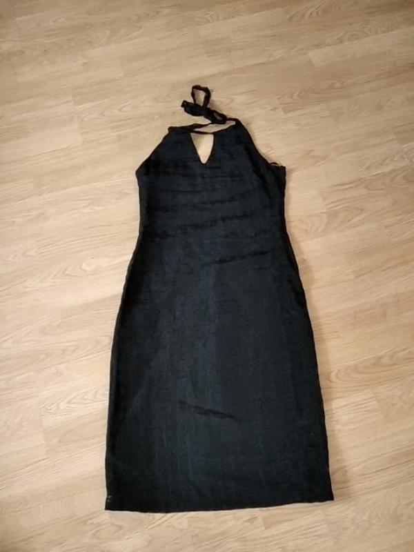 (ПЛ709) Маленькое черное платье на подкладке. есть ряды дырочек (см . два последних фото) , само платье прозрачное, но вместе с подкладкой , дырочки не так заметны. можно сделать стильную блузу (длина блузы получится 37см от подмышки, спереди от горла 50см) Состав: полиамид вискоза, льон Бренд Ted Baker , Лондон. Размер указан 3, наш М. Замеры: ПОГ 43см ПОТ 39см ПОБ 46см длина от подмышки 81см спереди от горла 97см Отправлю Новой или Укрпочтой.