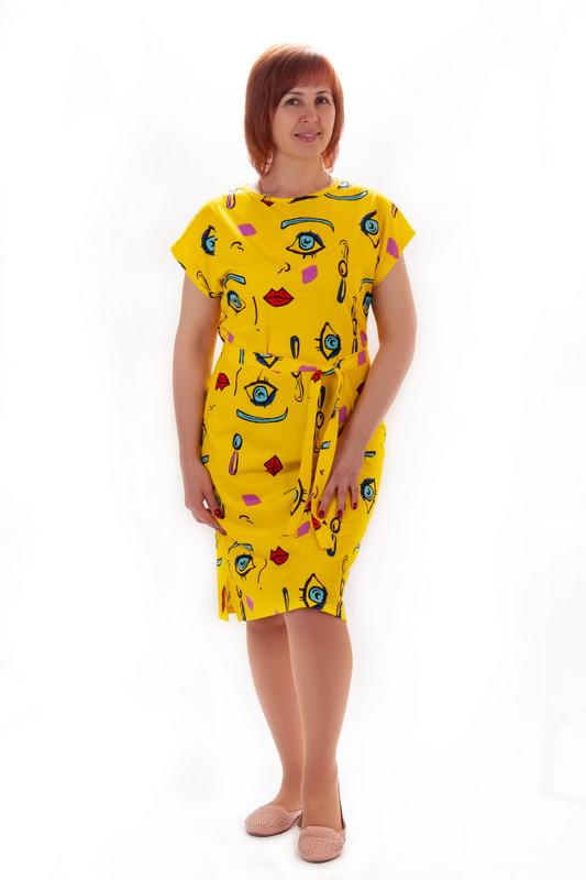 Легка яскрава сукня для жінок з високоякісного принтованого куліру. Модель напівприлеглого силуету, з округлим вирізом, суцільнокроєними рукавами. Пояс у комплекті вигідно підкреслює талію. Сукня представлена у різних принтах, на будь-який смак, підходить для повсякденного носіння з босоніжками, балетками. Полотно хорошої якості, натуральне за складом, не линяє, може давати усадку після прання. Кулір нееластичний, рекомендується враховувати це при виборі розміру. Полотно: кулір Склад: 100% бавовна Рекомендації з догляду: прати при температурі не більше 30°C. Допускається прання у режимі "ручне" або "делікатне".