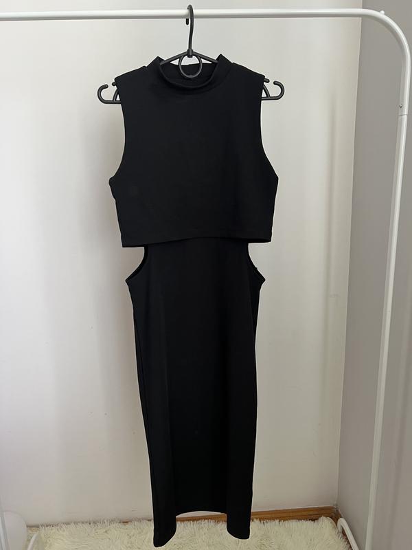 Черное платье от Topshop в рубчик с вырезами по бокам.