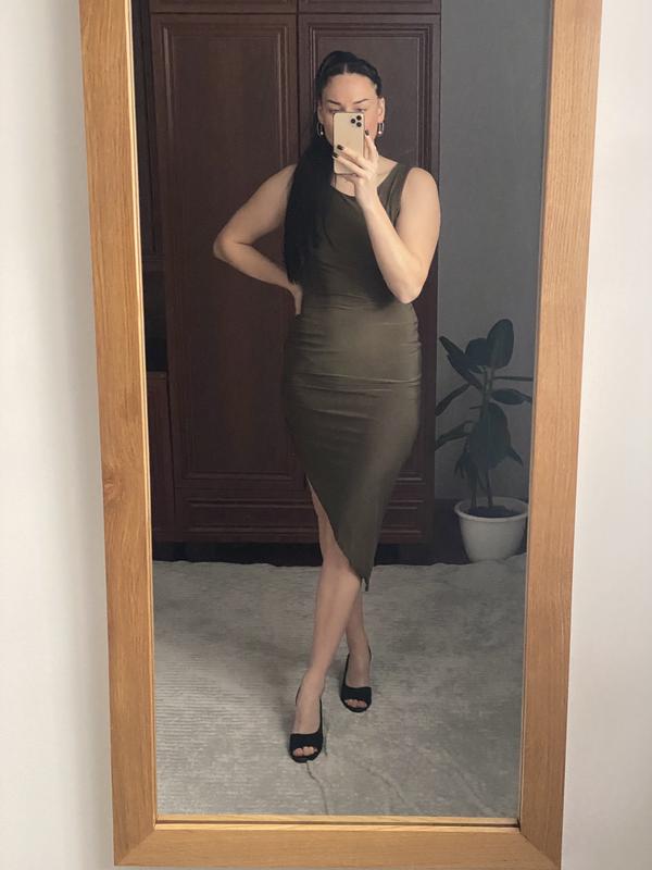 Платье отличное состояние, без дефектов. Ткань имеет свойство растягиваться в ширину так длину Длина платья от плеча до разреза 80 см Полу обхват в груди 43 см Состав 95% Полиэстер 5 % еластан