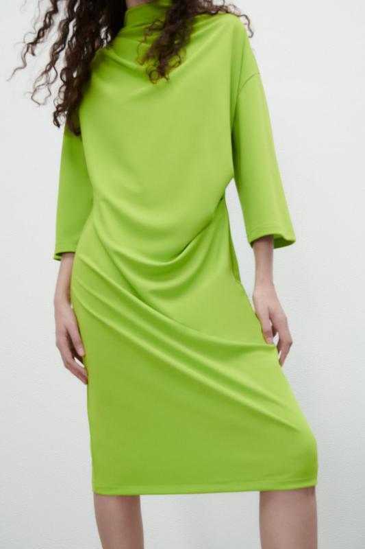 Дуже яскрава весняна сукня міді від Zara, драпіровано попереду. Розмір на бірці S, але більшемірка, підійде на М, бажано мати зріст від 170