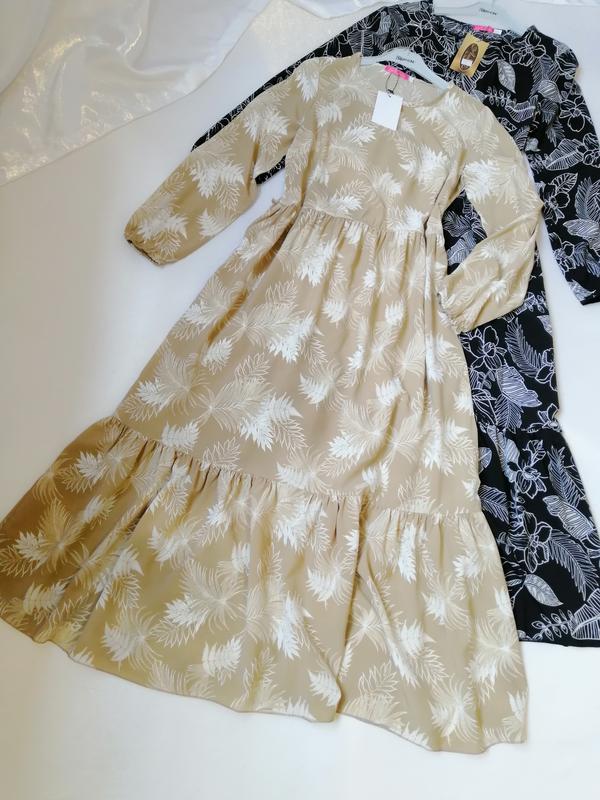 ☘️ красива сукня довжини міді легка з пишним рукавом Принт листя красивое платье длины миди лёгкая с пышным рукавом Принт листья