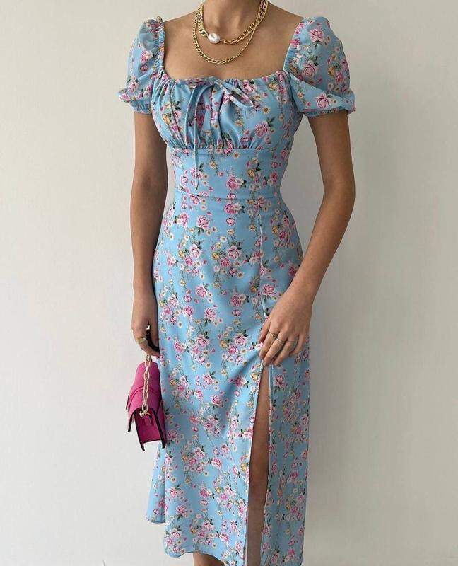 Сукня міді 💚 • матеріал: софт на підкладці, ззаду на замочку🎫 • розміри: S, M, L • кольори: блакитний, беж, зелений, рожевий • довжина: 122 см