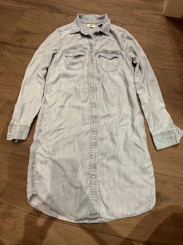 Джинсове Плаття міні Levi’s оригінал Тканина - тоненький джинс. Розмір XS Заміри Довжина плаття 83 см Ширина в грудях 41 см Довжина рукава 58 см