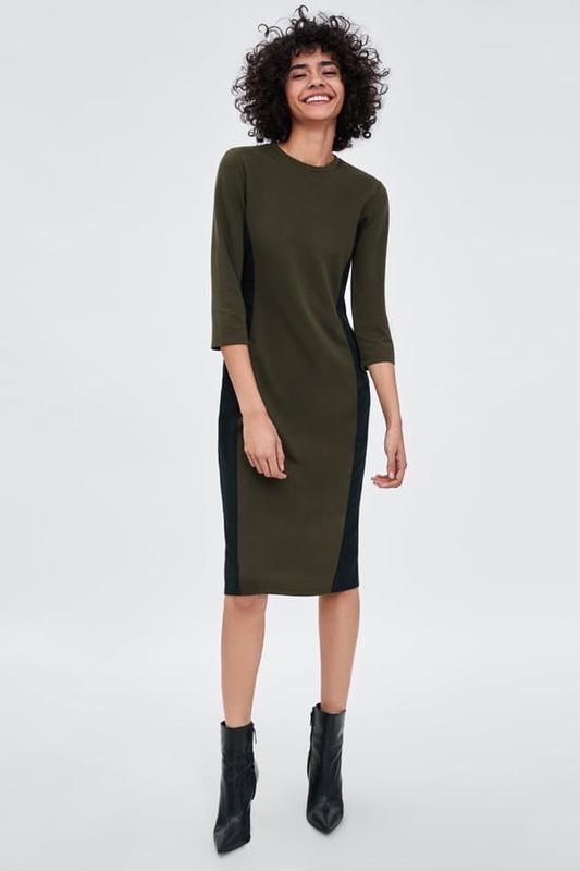 Красивое платье Zara, подчеркивает фигуру. Очень классный материал, приятный к телу. Трешки тянется Размер м Длина 107,5 см Рукав-45 см Ширина между подмышками 42 см Плечи 35 см Талия 35 см Стегна 45 см