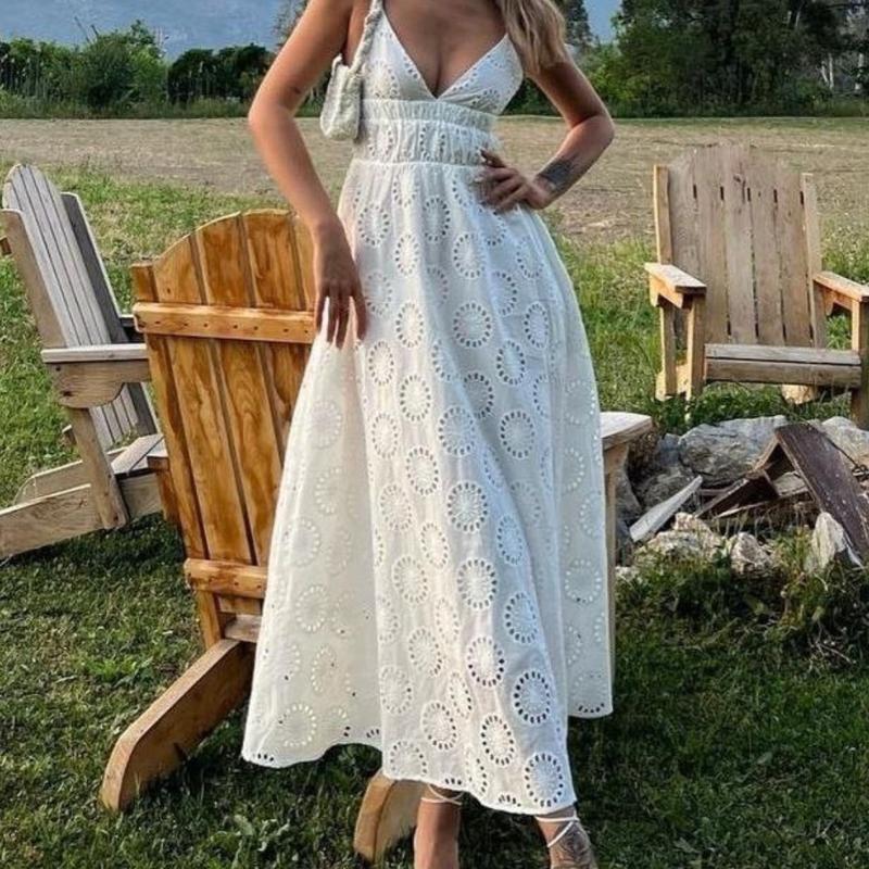 Платье прошва сарафан с декольте на брителях свободного кроя туречневая длинная белая
