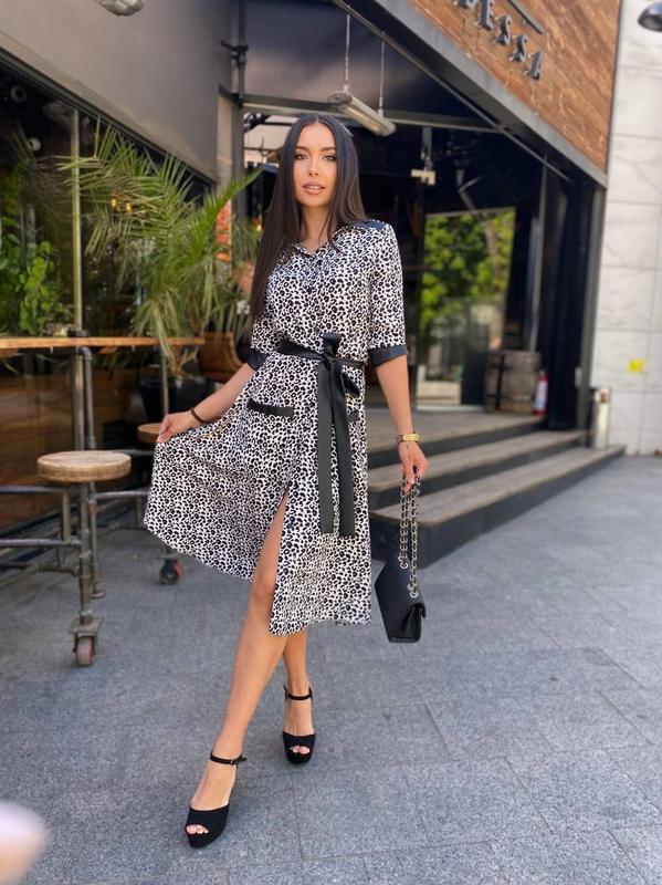 Сукня Фото наживо Мод 710 Ткань креп костюмка принт Лео + эко кожа Размер универсал 42-44; На пуговицах Талия отрезная Пояс в комплекте Цена 630 грн