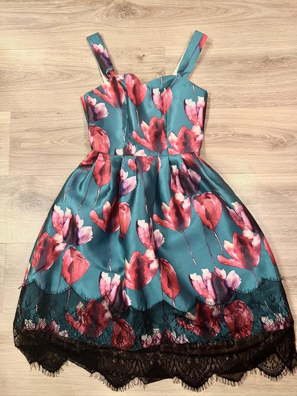 Красивое яркое летнее платье. На празднование/выпускной) Бренд Tutto bene. Размер XS. Полуобхват талии - 32-33 Гарна форма бюстика, внизу кружево. Ткань держит форму, разделение колокольчиком, подчеркивающее стройную талию, визуально увеличивает бедра) выглядит великолепно. Стан - идеальный. Мне уже не хватало. Возможно подойдет более стройной бархатке. На последнем фото - пример как смотрится на модели такое платье (в другом цвете )