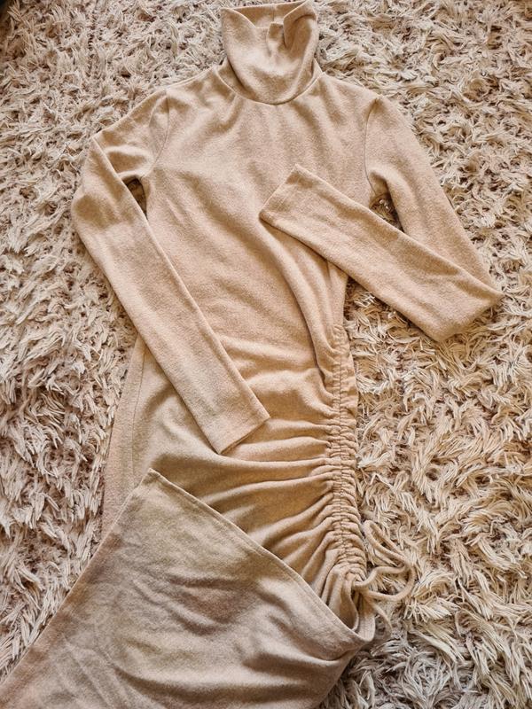 Очень красивое платье, размер хс-с, очень красиво на теле, дропоровка стягивается и убирается, разрез с боку, платье длины миди, мастери макси