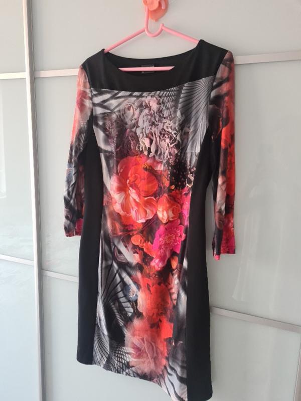 платье цветное п/э по бокам чёрные вставки-благодаря им очень стройнит фирма HERMANN LANGE 42 ПОГ51+,ПОТ44+,ПОБ53+,длина98,рукав52,плечи 41см