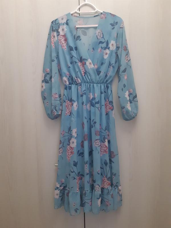 Платье легкое нежное в цветочный принт длина миди длинный рукав