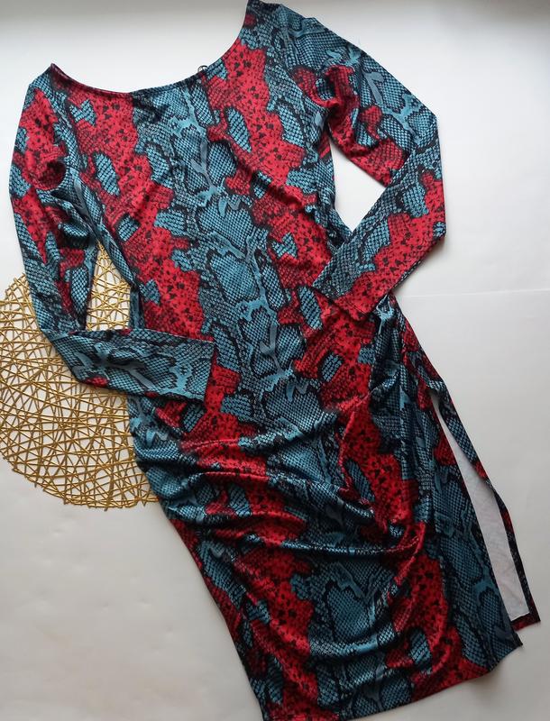 Облегающее платье миди с боковым разрезом. Платье с широким вырезом для плеч, в области бедер имеет драпировку. Размеры полномерные. Ткань эластичная, красиво тянется. ■ размер EUR 38. Длина 99см. Полуобхват: Грудь 45см, талия 40см, бедра 49см. Рукав 61см. Длина бокового разреза 37см. ■ размер EUR 40. Длина 100см. Полуобхват: Грудь 49см, талия 42см, бедра 52см. Рукав 61см. Длина бокового разреза 38см.