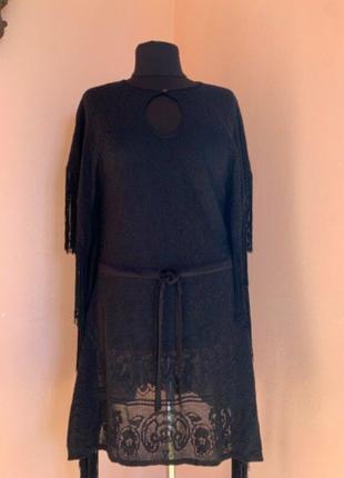 Класна блуза з китицями, тканина еластична, мереживний трикотаж. Довжина- 95см, рукав - 23,5см, плечевий шов- 33см, пог- 70см, до низу пряма. Стан нової.