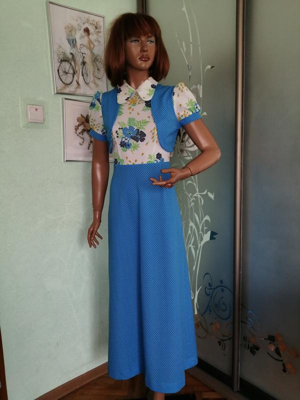 Красивое яркое платье в стиле 70 х, идеальное состояние, ткань средней плотности, без подкладки. Пог 44-46,пот 34-35, поб 45-46,дляж рук 21,длинней пл от плеча 134.