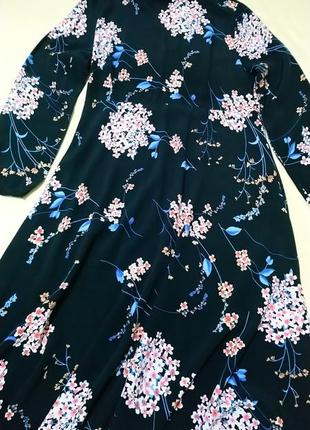 Шикарное платье миди натуральное вискоза 100% яркий цветочный принт на чёрном фоне длинный рукав отрезное по талии очень комфортно в носке ПОГ 46 ПЛЕЧИ 42 РУК 59,5 БЕДРА 56 ПОТ 43 ДЛИНА 112