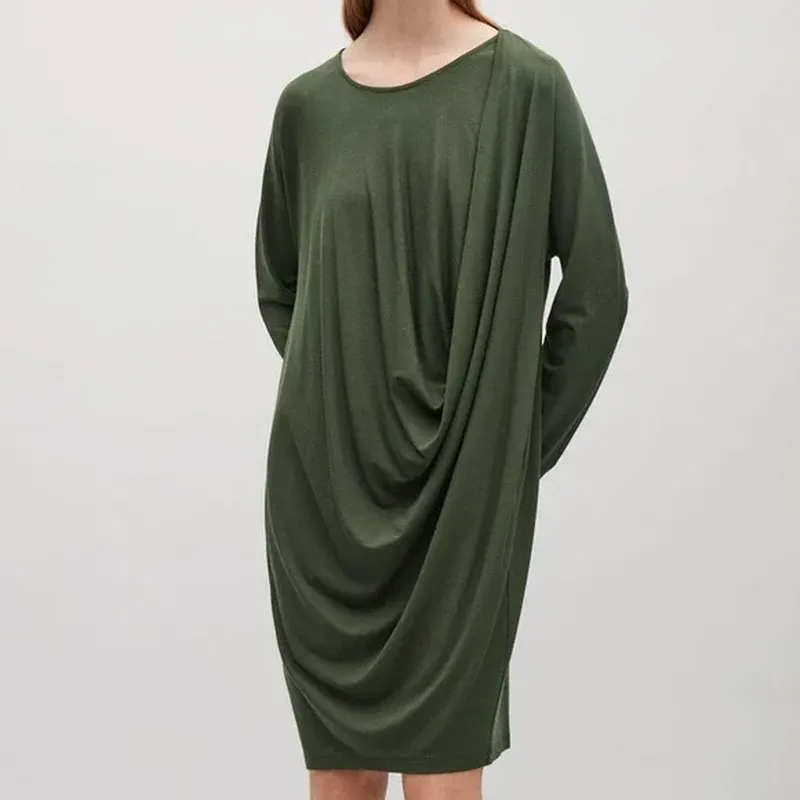 Склад: 94% віскоза, 6 еластан Полуобхваты неможливо точно поміряти через драпірування, але пог більше 50 см. Рукав вузький! Заміри: довжина виробу 85см