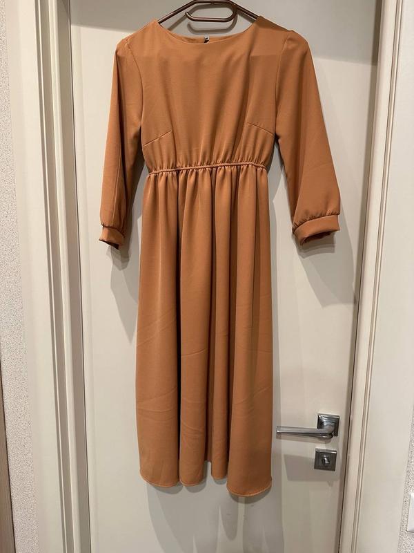 Платье миди Ткань - плотный хлопок с эластаном (тянется). Рукав 3/4. Размер S-M. Замеры Длина платья 105 см Ширина в груди 37см Длина юбочки 75 см Длина рукава 44 см