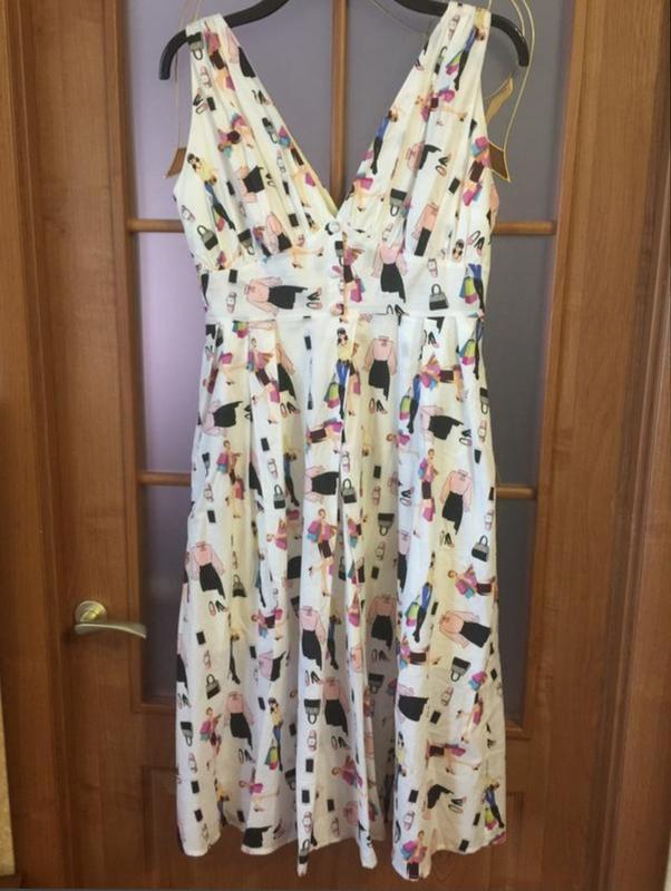 Модное,современное, легкое летнее платье из натуральной ткани-48 р. Длина -110 см, от плеча до талии 38см, ПОТ - 37, Сбоку скрытая молния, переди встречная складка. Состояние нового, одевалось только раз!причина продажи -замалы!
