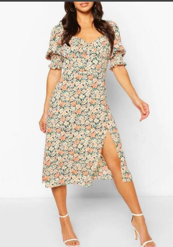 Дуже красиве плаття ,дорвжини міді в квітах,з о*бємними рукавами ,зздаду зтібаеться на блискавку..Виконано з приемної до тіла тканини -100% поліестер.Вказаний розмір 16,але оріентуйтесь по замірам.Напівобхват грудей -54.-55.Напівобхват талії-45.напівобхват стеген-57.Плечі-40.Рукав-38.Довжина -118.Сток.Стан нової речі.Відправляю по 100% передоплаті на картку приват банку.Всі запитання задавайте відразу.Повернення немає.