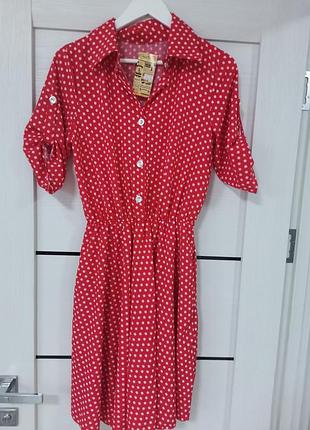 легенька сукня,розмір 42-44,пояс в комплекті ,рукав короткий з гудзиком але не відстібається, по бокам кармани,заміри по запиту