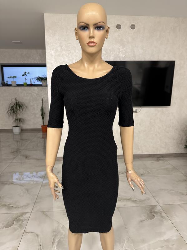 Очень красивое платье по фигурке. Состояние идеальное. Размер 36, хорошо будет на хс-с. Замеры: длина 99см, пог 43см, пот 31см, поб 38см, рукав 27см. Ткань тянется.