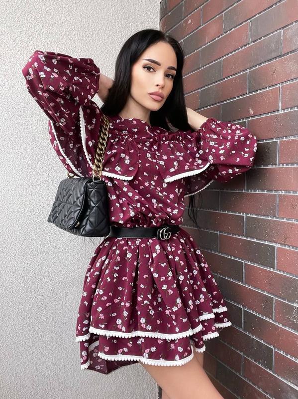 Мод 2027/68 Тканина софт Колір бордовий принт Розмір 42-44,44-46 ОГ88 ВІД88 ОБ104 Довжина виробу 82 см Слід розмір +4 см довжина +2 Ремінь +50 грн