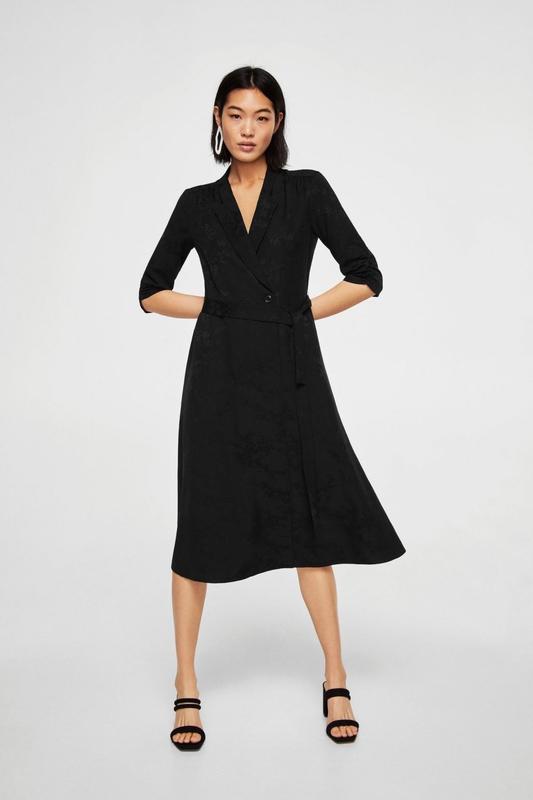 Пояс потерян, добавила просто кожаный, крой позволяет добавить любой черный или контрастный, широкий или узкий. Размер М. Ткань черная плотная с узором цветы. Застегивается на одну пуговицу, нужен пояс Длина 112 Плечи 45 Рукав 40 Груди 53 Талия 45 Бедра 68 Лиоцелл – 60%, Полиэстер – 40%
