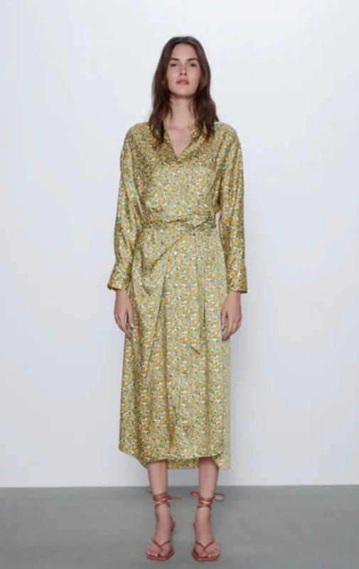 👗сатиновое платье-рубашка миди в мелкий 🌸цветочный принт zara (размер 36-38)