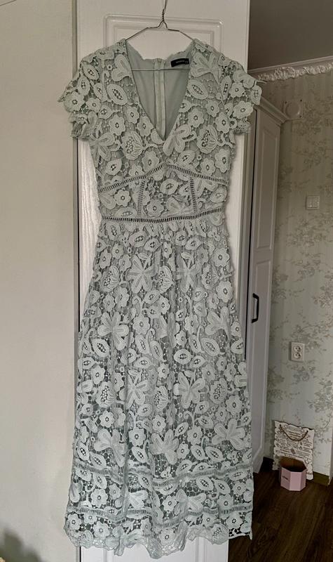 Очень красивое платье в размере s. По спинке замочек. В талии утягивает. Верх прозрачный длинный, нижняя ткань до колен. Цвет нежно голубой.
