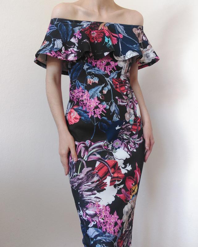 Красивое платье Papaya с воланами Новое эффектное платье с открытыми плечами миди. Отлично садится по фигуре и подчеркивает ее. Ткань плотная, не просвечивает, немного тянется. Состояние новой, с биркой. Размер M (одет на s) Замеры: ПОГ - 43 см, ПОБ - 46 см, длина - 98 см Отправка после 100% ПЕРЕДОПЛАТЫ По Новой почте Укр-почтой Возвращение обмена отсутствует