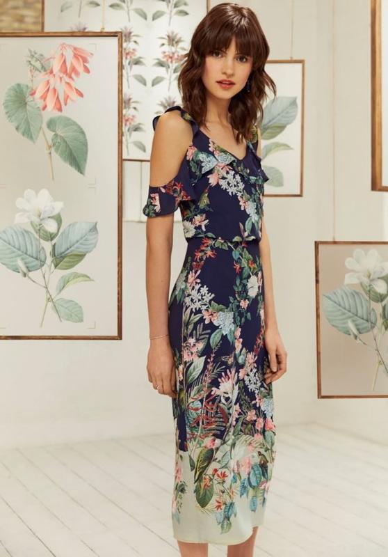 Платье миди в цветочный принт от британского бренда Oasis. На спинке потайная молния, сзади разрез, есть подкладка. Ткань не тянется. Размер указан S. Состояние новой вещи. Замеры: ПОГ 43 + выточки ПОТ 34 ПОБ 46 Длина 130