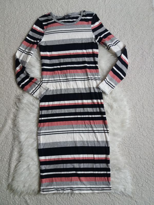 Трикотажное платье в полоску миди. Длина 105 см, пог в ненатянутом виде 38 см, тянется до 48 см, пот 34 см, до 42 см, поб 42 см, до 50 см. (арт. П5)