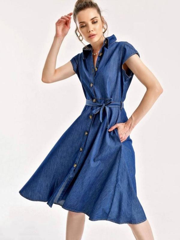 Модель с короткими рукавами и карманами в боковых швах. Пояс из основного материала в комплекте Материал: джинс Состав: 97% коттон, 3% лайкра Растяжимость: слегка тянется (2-3 см) Доступно в другом цвете На модели представлен 44 размер 📦 Доставка Новой Поштой, Укр-бытой 🙌 Наложенный платеж ♻️ Есть обмен