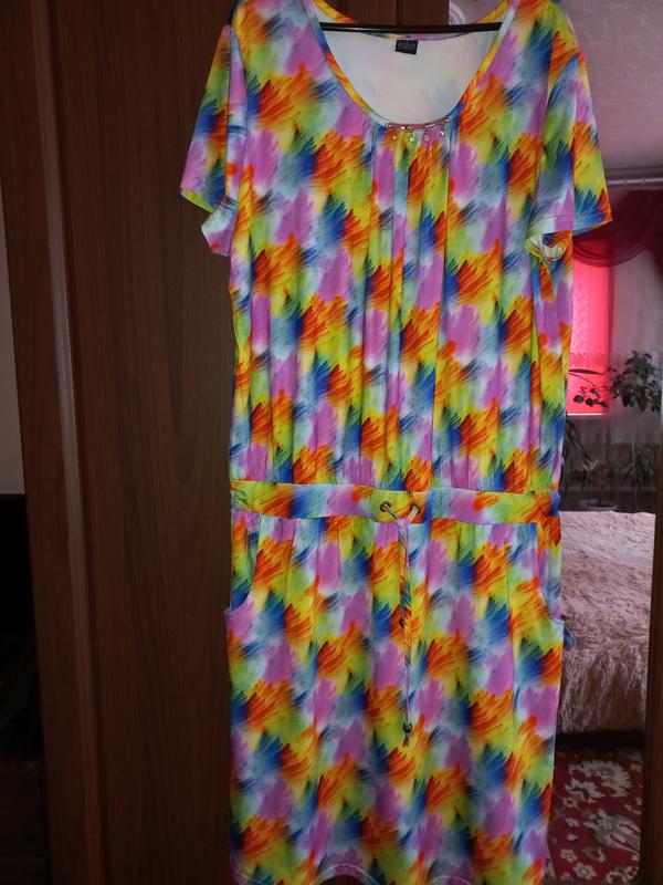 Очень легкое платье, по бокам карманы, талии затягивается пояском