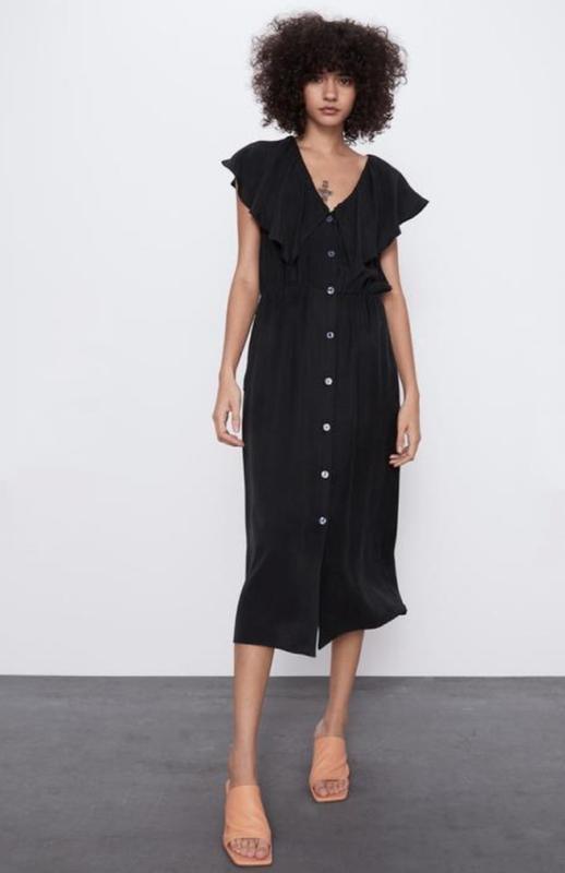 🌿черное платье миди от Zara с боковыми карманами, талия на резинке, ткань лиоцелл Размер:S Замеры:ПО груди 44 см, талия 30 см, ПО бедер 47 см, длина 120 см