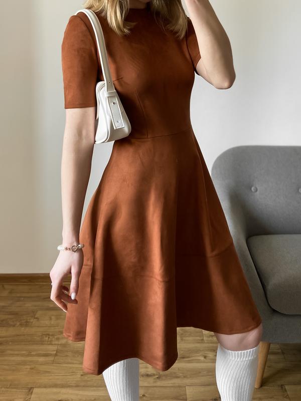 Новий товар! Країна виробник: Україна Матеріал: замш Склад: поліестер,віскоза Розмірна сітка: 42/44, 44/46 Тканина тягнеться, гарно сідає по-тілу та підкреслює фігуру ЗАМІРИ: Розмір: 42/44 Ширина плечей 36 см Напівобхват грудей 43см Напівобхват талії 33см Напівобхват стегон: 55см Довжина рукава: 25см Довжина сукні: 101см Розмір: 44/46 Ширина плечей 36 см Напівобхват грудей 45см Напівобхват талії 35см Напівобхват стегон: 58см Довжина рукава: 25см Довжина сукні: 101см Спідниця від талії до низу 58см