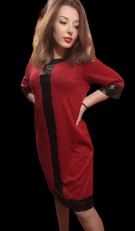 Стильное платье для молодых женщин, свободного кроя, красиво смотрится на фигуре, подходит на размер 48-52. Основной материал ангора -софт, приятная к телу ткань тонкой вязки. Отдекорирована полосками из эко-кожи, что придает особый шарм. С аксессуарами можно рассматривать, как праздничный вариант, так и повседневный.