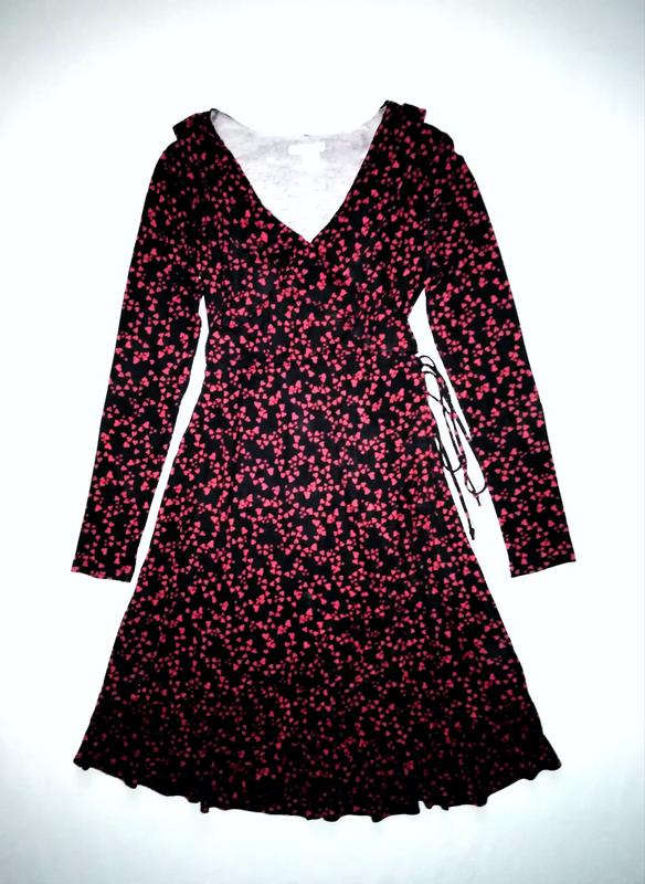Трикотажное платье. ПОГ-44-46см. Дл. - 100см. Дл.рукава - 60см. Эмитация пошива в запах. С воланами по низу и вокруг шеи по декольте. На талии стягивается на поясок (шнурочек).