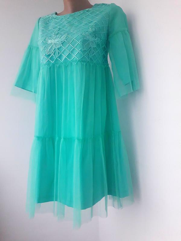 Очаровательное, нарядное платье. Верх оздоблений гарним кружевом. Мятного цвета Размер: М Цена 400 Пишите в сообщения, сбрасываемое замеры