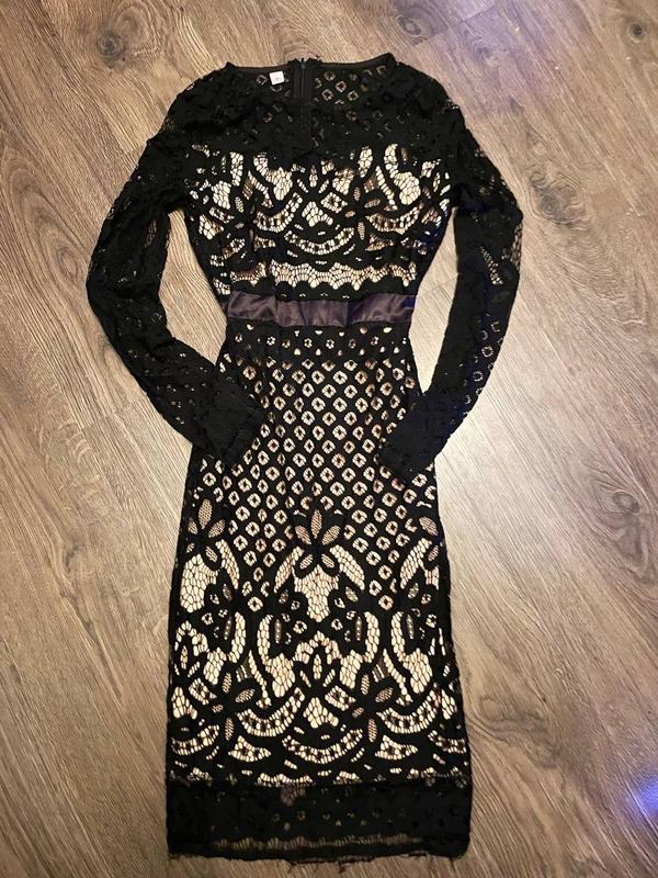 Ажурное черное платье Размер S(42-44) Идеально подойдет на рост до 180 см Длина по спине -105 см Длина рукава -67-68 см Состояние идеальное Надето один раз