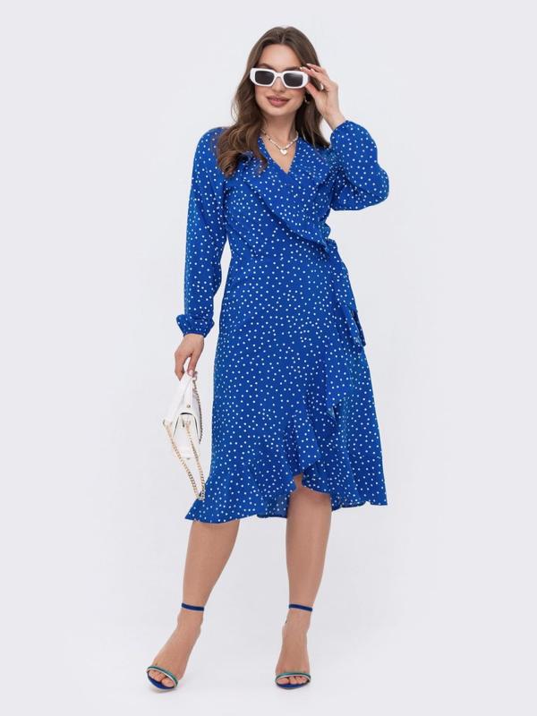Платье на запах из вискозы в горошек. Горловина и низ изделия дополнены рюшей. 📍Артикул: 20679/1 👗Размеры: 42-44, 46-48, 50-52