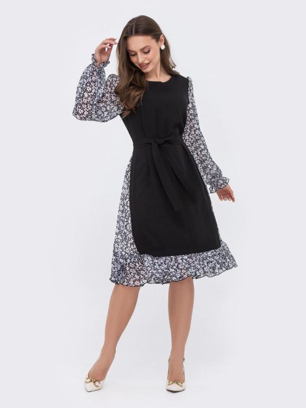 Повседневное платье с расклешенной юбкой. Рукава и волан выполнены из шифона. Комплектуется поясом из основной ткани. Изделие без застежек. 📍Артикул: 60915 👗Размеры: 44, 46, 48, 50