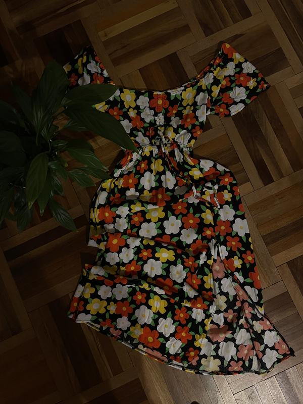 Летнее платье длины миди, с разрезом на ножке и с затяжками на груди 🧡 Размер S-M (дополнительно скину замеры, если надо) Есть фото на теле. Надевала 1 раз.