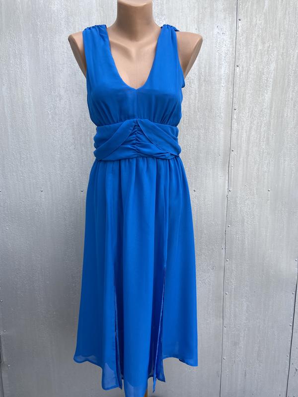 Голубое платье миди Стан - идеальный. Ориентировочно подойдет на размер М, но лучше смотрите на замеры. Замеры: От плеча до плеча - 35 см Полуобхват груди (ширина под подмышками) – 42 см Полуобхват талии (в самой узкой части талии) – 37 см Полуобхват бедер – свободно Длина - 105 см