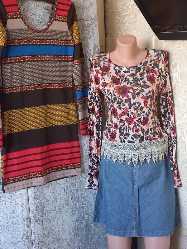 Набор одежды,состоящий из трикотажного платья,джинсовой расклешенной юбки и трикотажной кофточки с кружевом. Все в отличном состоянии,весь комплект одежды за 125 грн. Платье длина-80см,пог-40см,пот-35см,поб-40см,рукав-62см. Юбка из качественной джинсы,не тянется. Длина-53см,пот-36см,поб-48см. Кофта длина-55см,пог-40см,пот-42см,рукав-64см\бирки с составом нет\