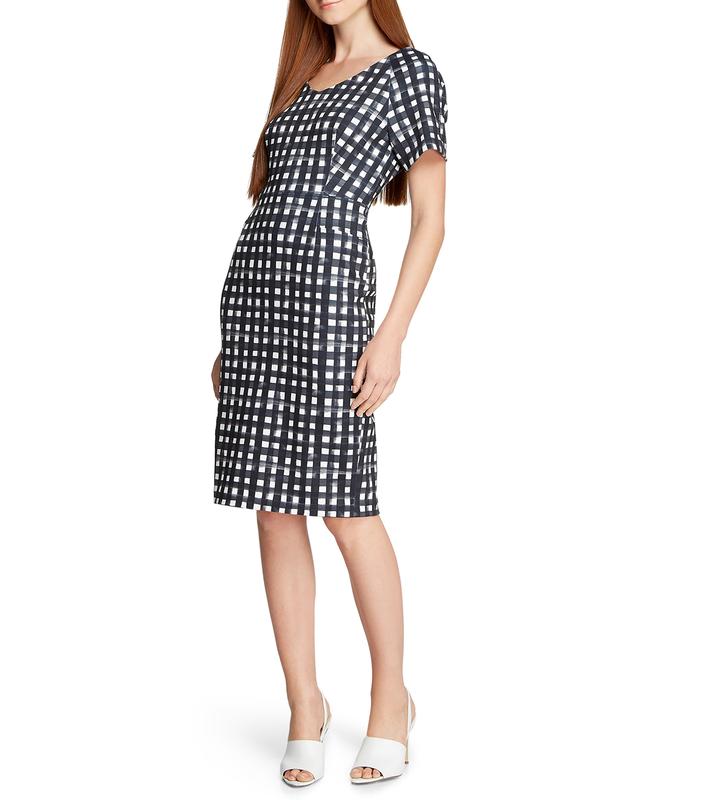 Плаття прямого крою Cortefiel з трикотажного полотна з квадратами, призбираними з боків і застібкою на спині. Куплено на fiftyoutlet (Іспанія) 66% Poliéster, 28% Viscosa, 6% Elastano. Розмір Л425069 Під руками 52, в зоні талії 42, довжина 105.