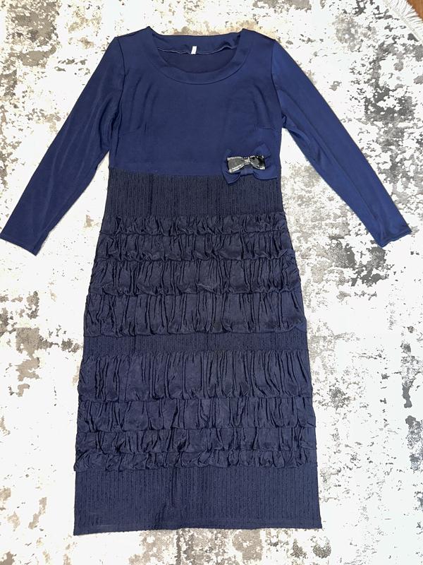 Довжина сукні 124 см , довжина рукава-61 см , ширина плечей 46 см , ширина під пахвами 56 см , ширина талії 46 см , ширина стегнах 56 см дуже добре тягнеться