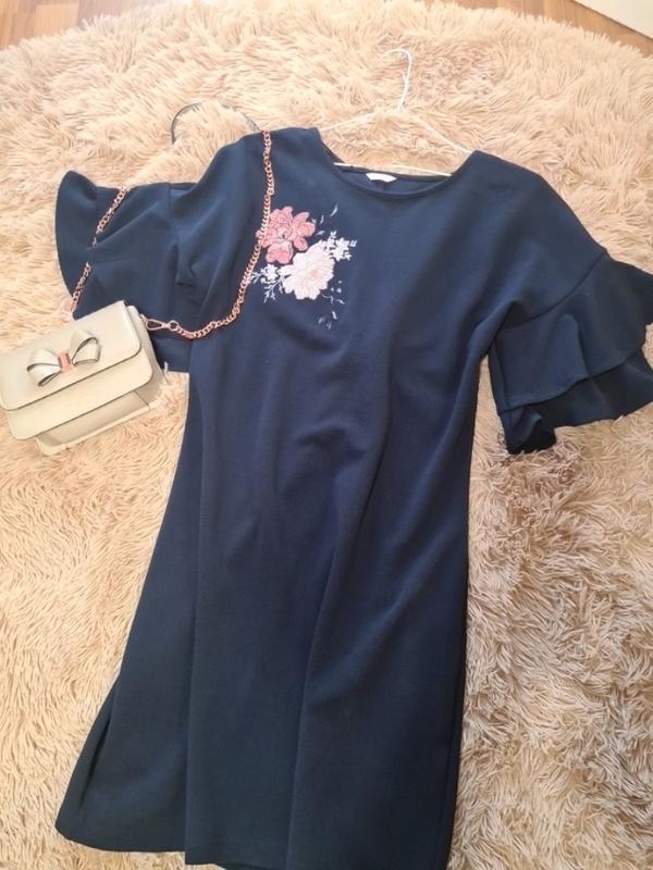 Платье. Темно синий цвет.Вельной покроя. Замеры: Длина по спине -95 см плечи спадают. Размер платья 42. size L Виробник Польша.