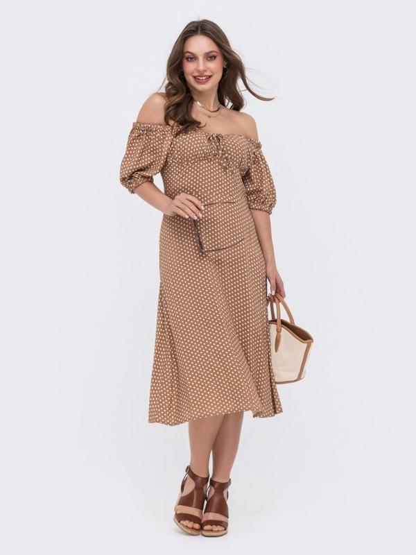 Принтованное платье с кулиской на лифе. Широкая резинка по горловине позволяет открыть плечи. Рукав "баф" с резинкой. Застегивается на скрытую молнию по спинке. 📍Артикул: 60912 👗Размеры: 44, 46, 48, 50