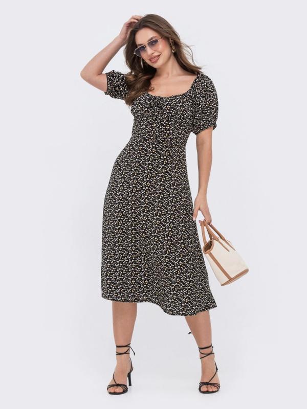 Принтованное платье с кулиской на лифе. Широкая резинка по горловине позволяет открыть плечи. Рукав "баф" с резинкой. Застегивается на скрытую молнию по спинке. 📍Артикул: 60912 👗Размеры: 44, 46, 48, 50